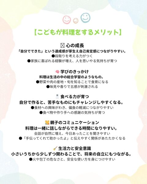ひとり親枠や不登校枠も設け、全てのこども達が調理をしながら会話が生まれ、